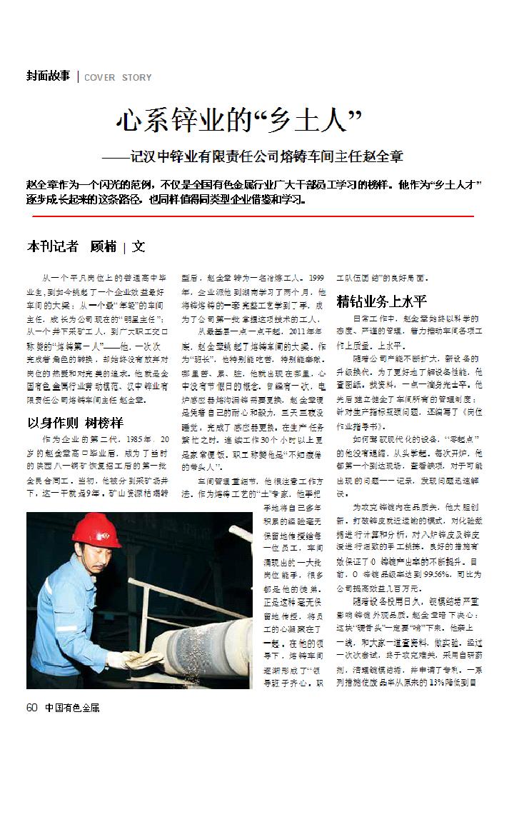 心系鋅業的 “鄉土人”——記漢中鋅業有限責任公司熔鑄車間主任趙全章