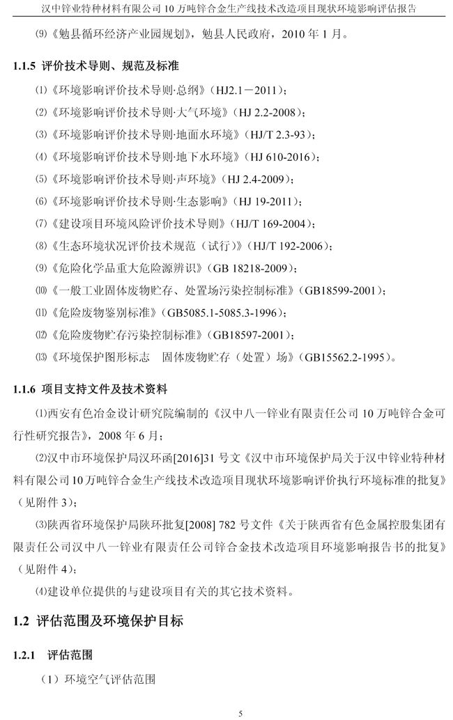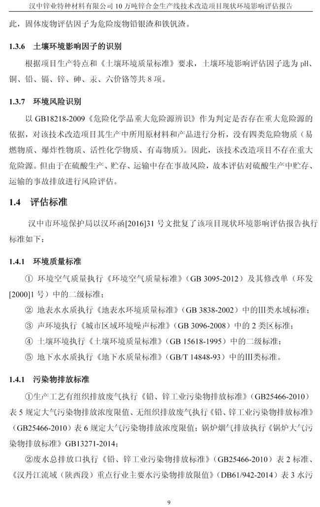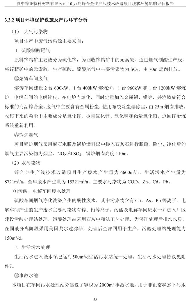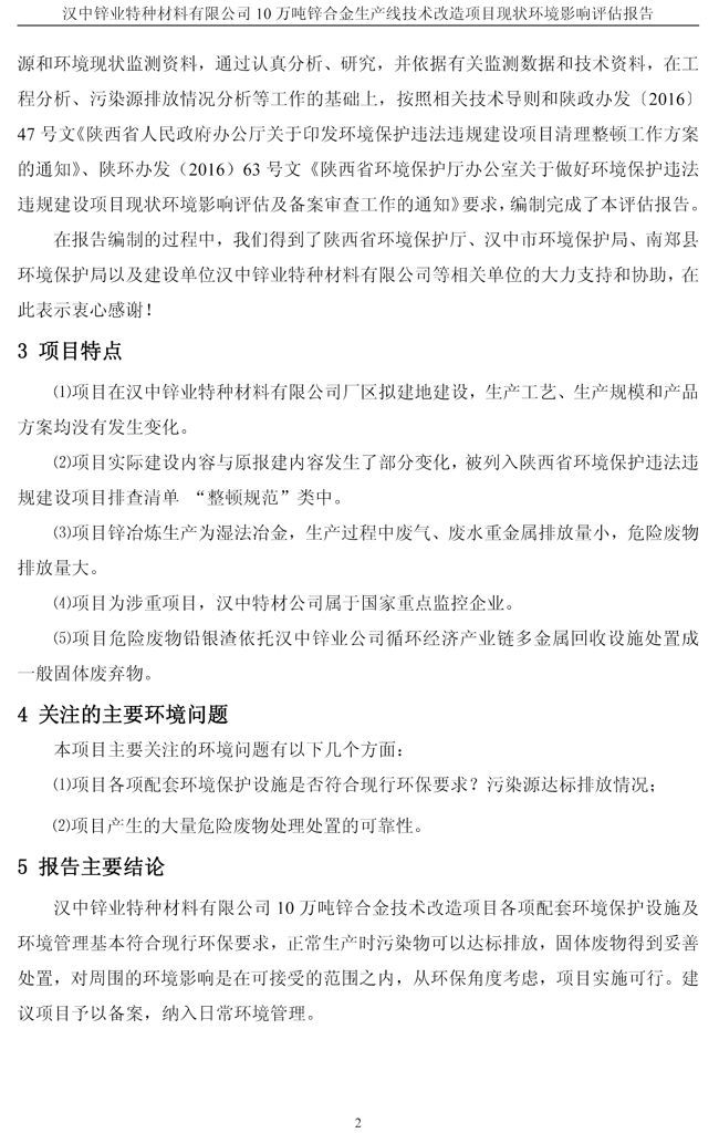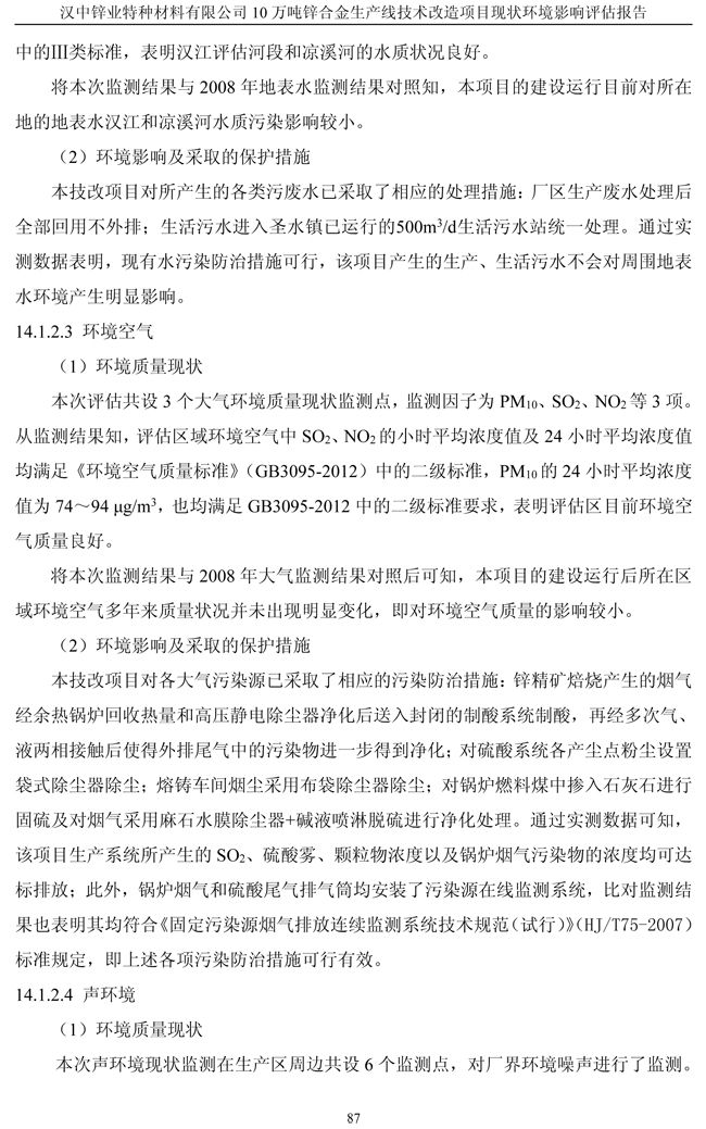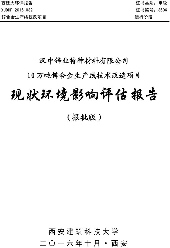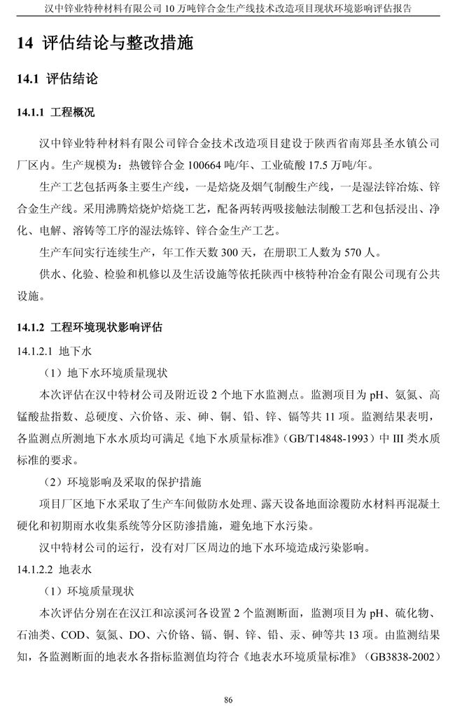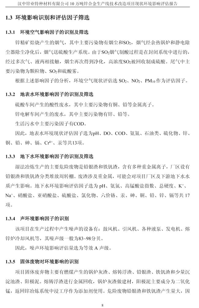 漢中鋅業公司鋅合金項目現狀環境影響評估報告
