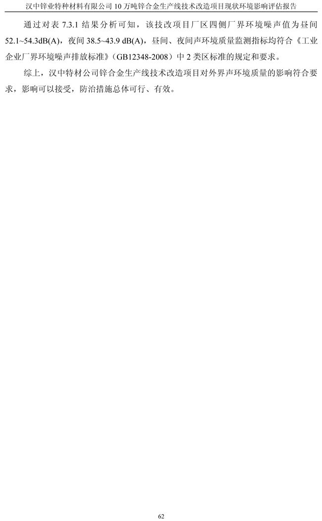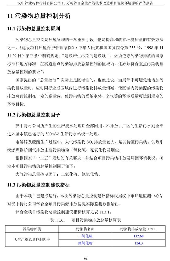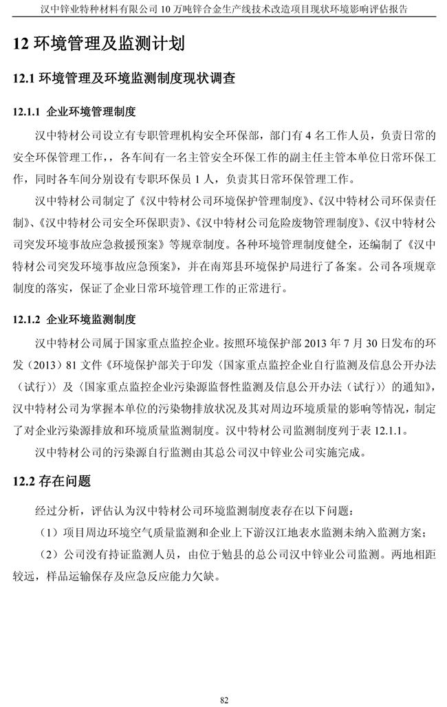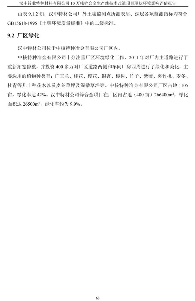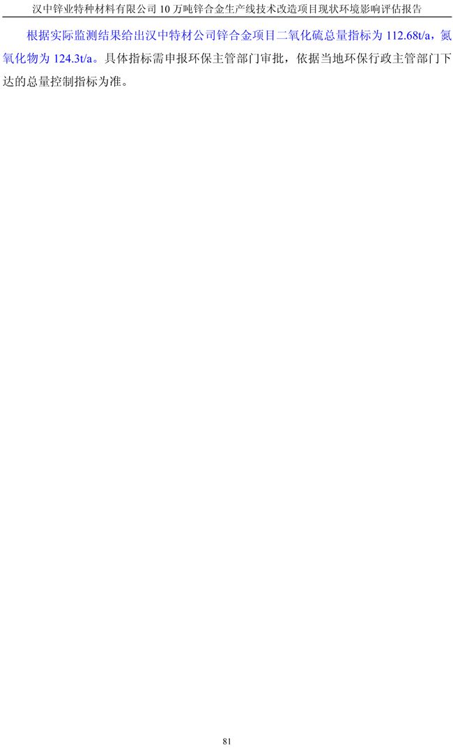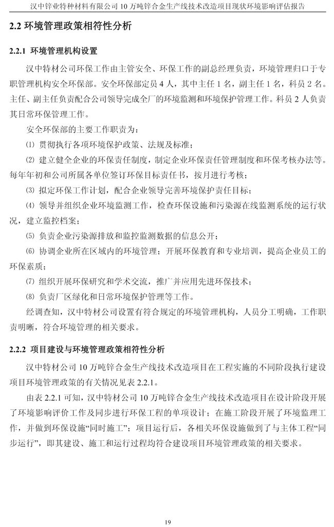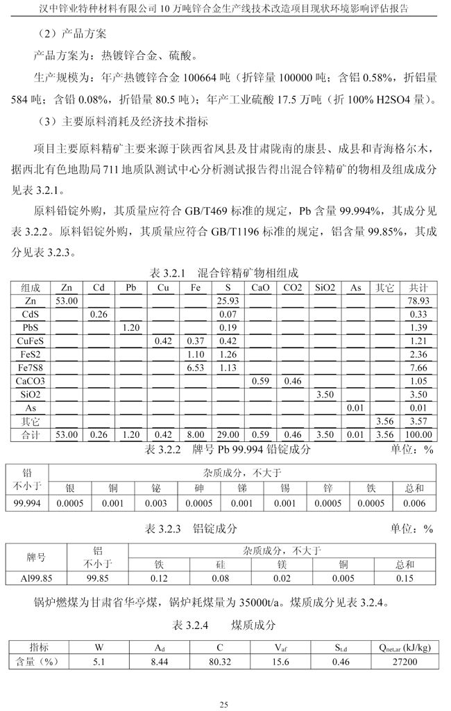 漢中鋅業公司鋅合金項目現狀環境影響評估報告