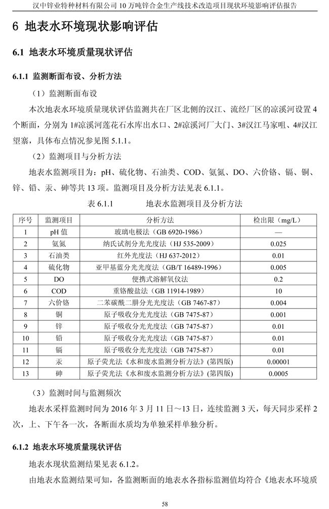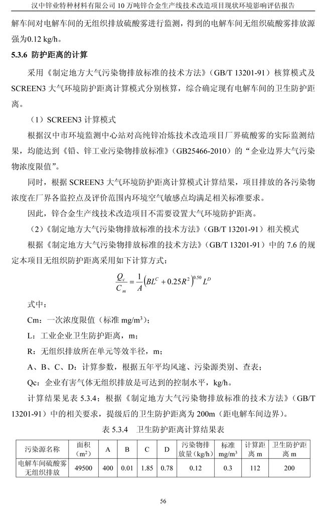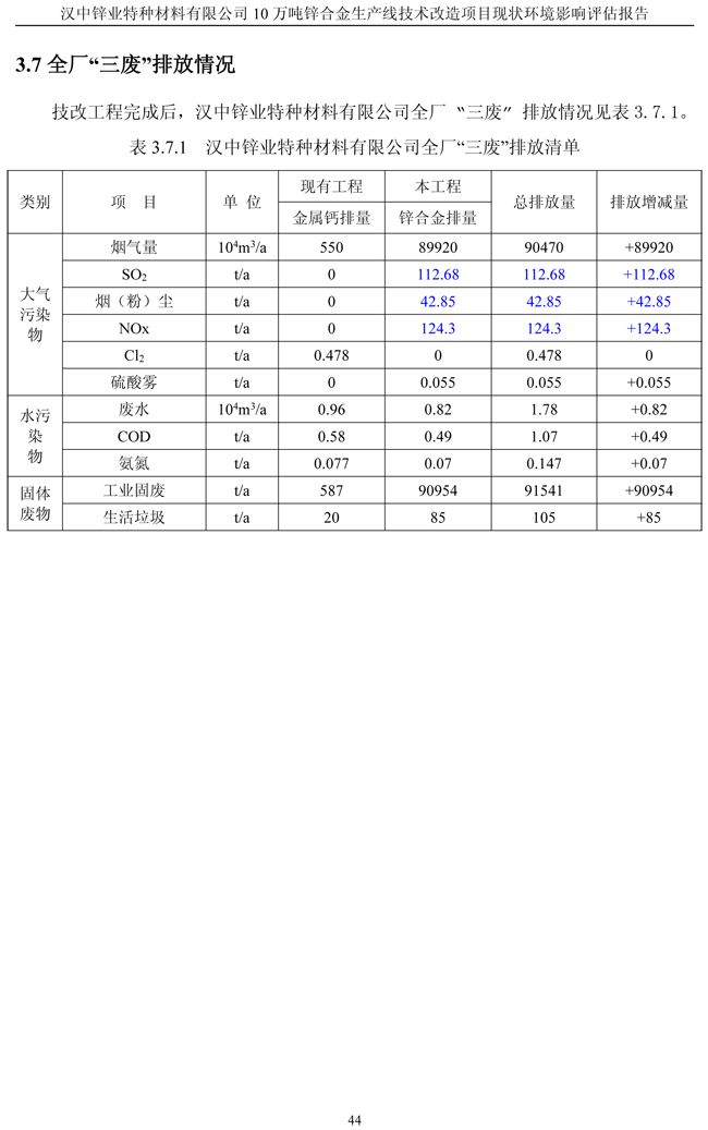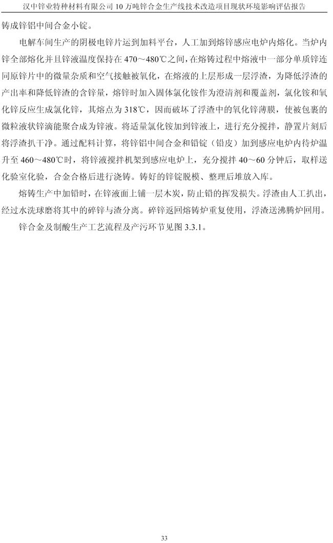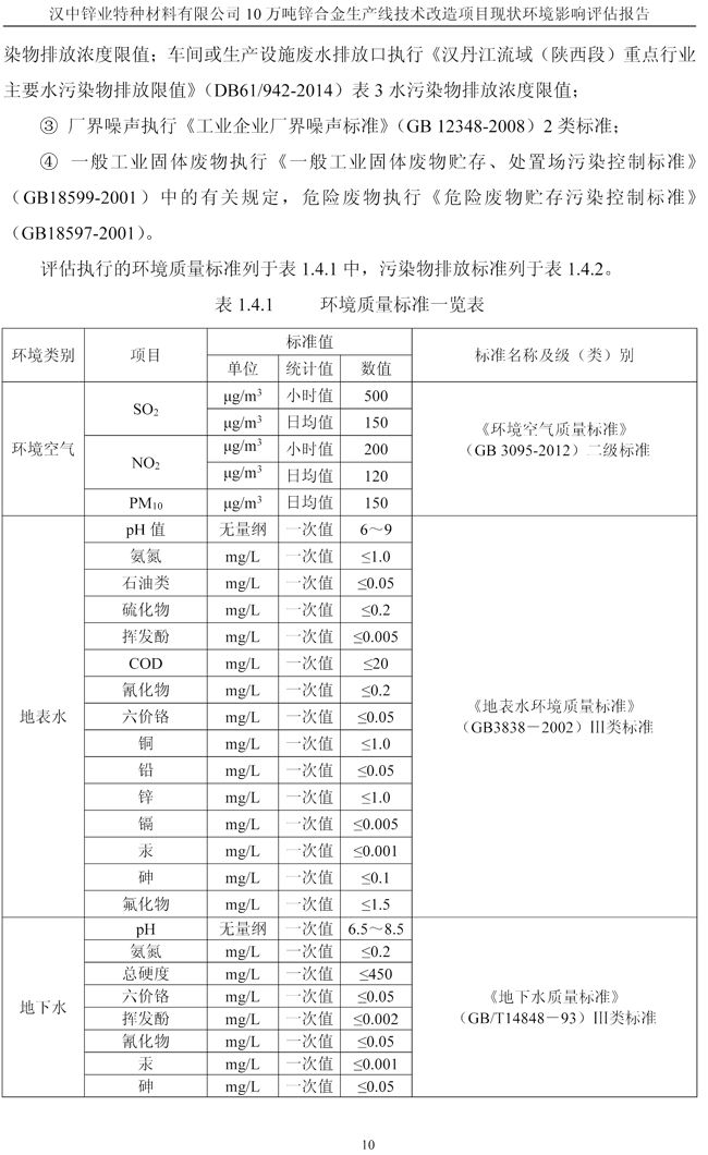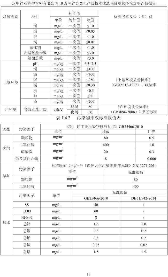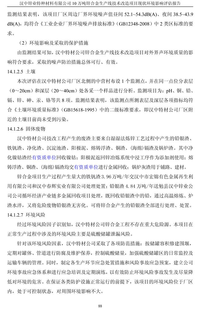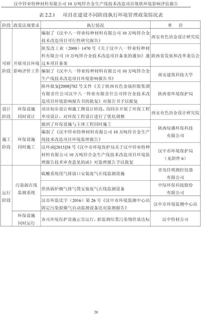 漢中鋅業公司鋅合金項目現狀環境影響評估報告