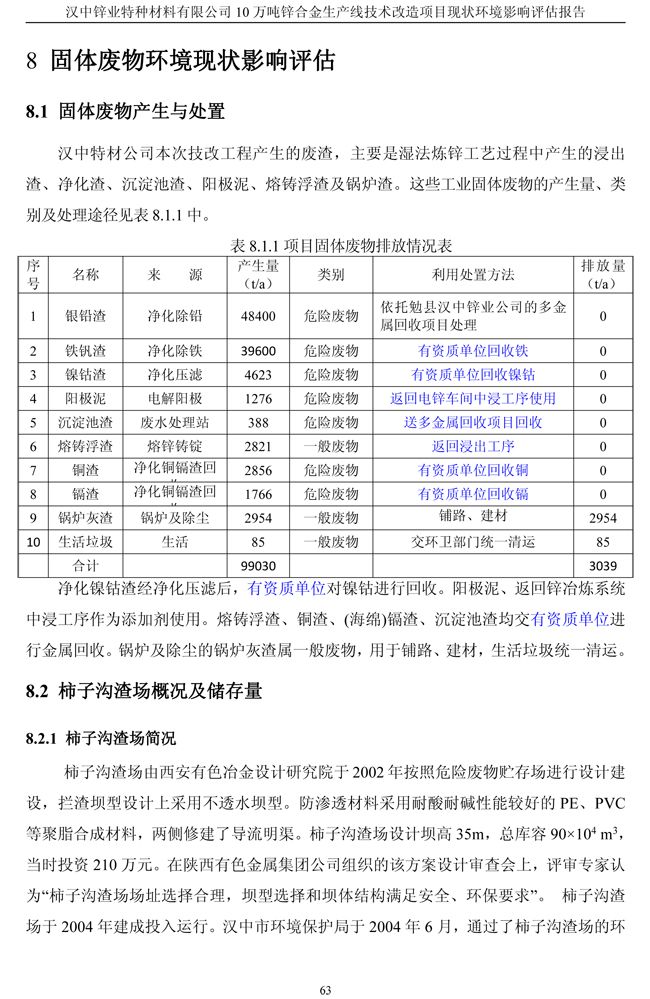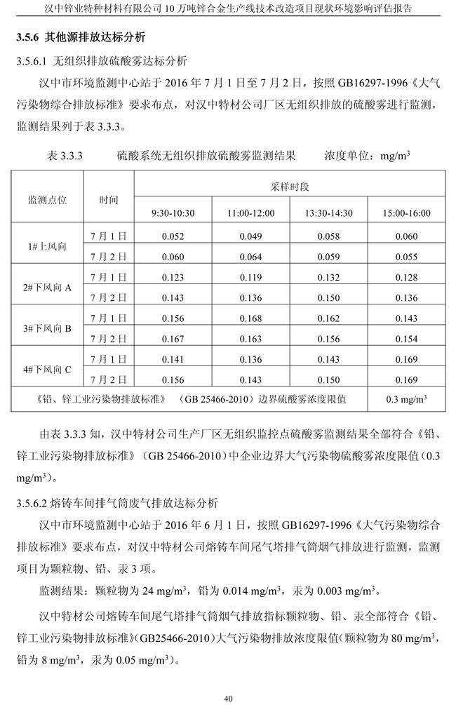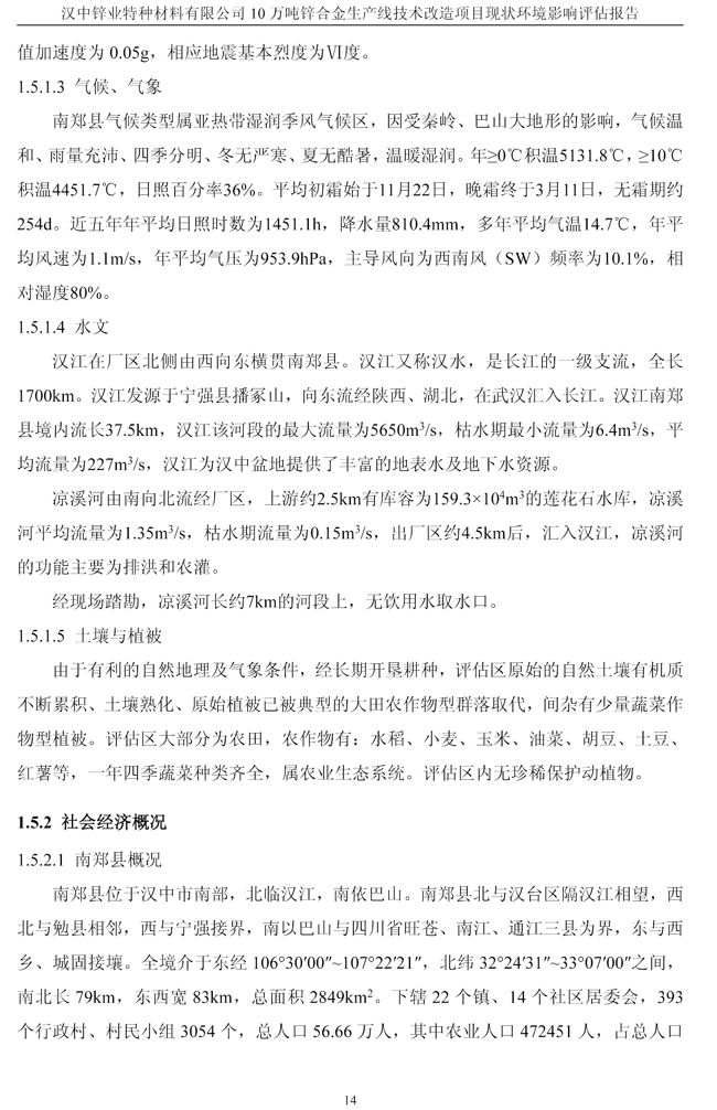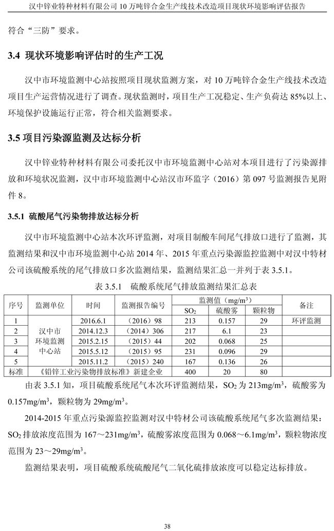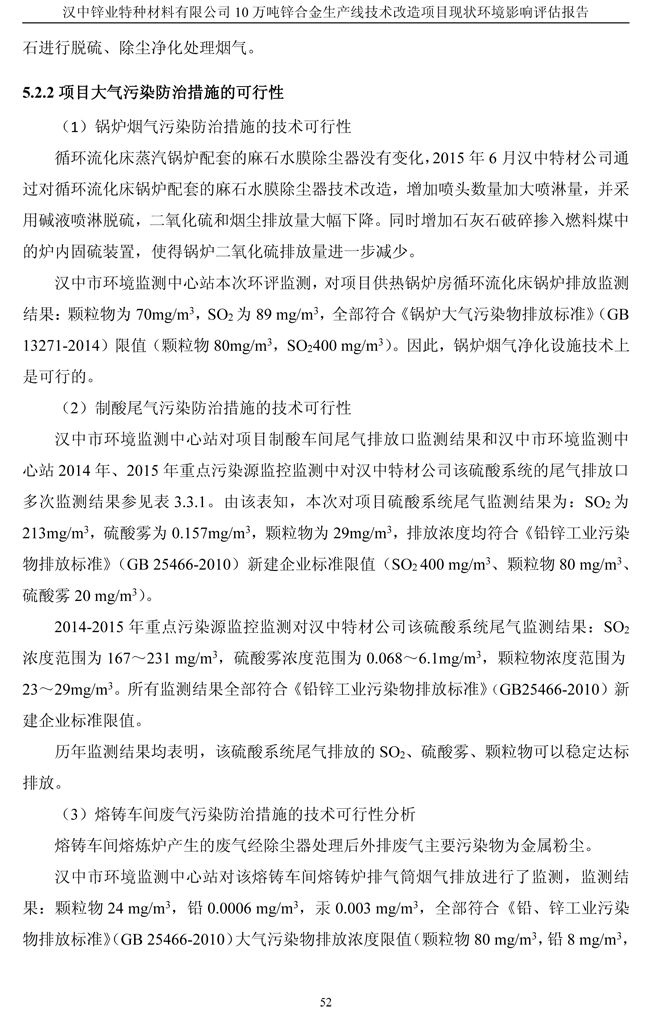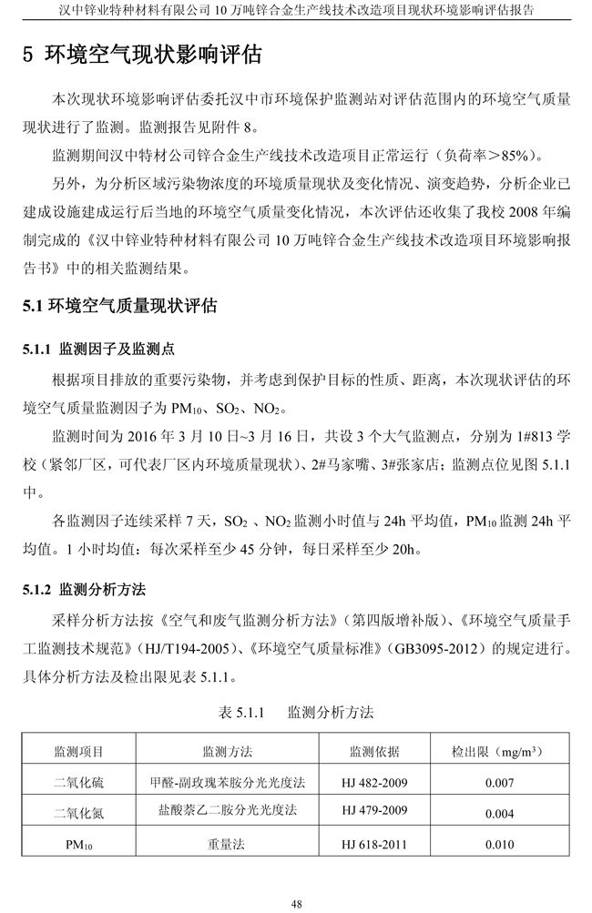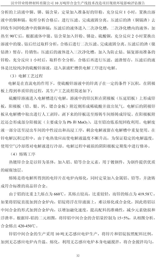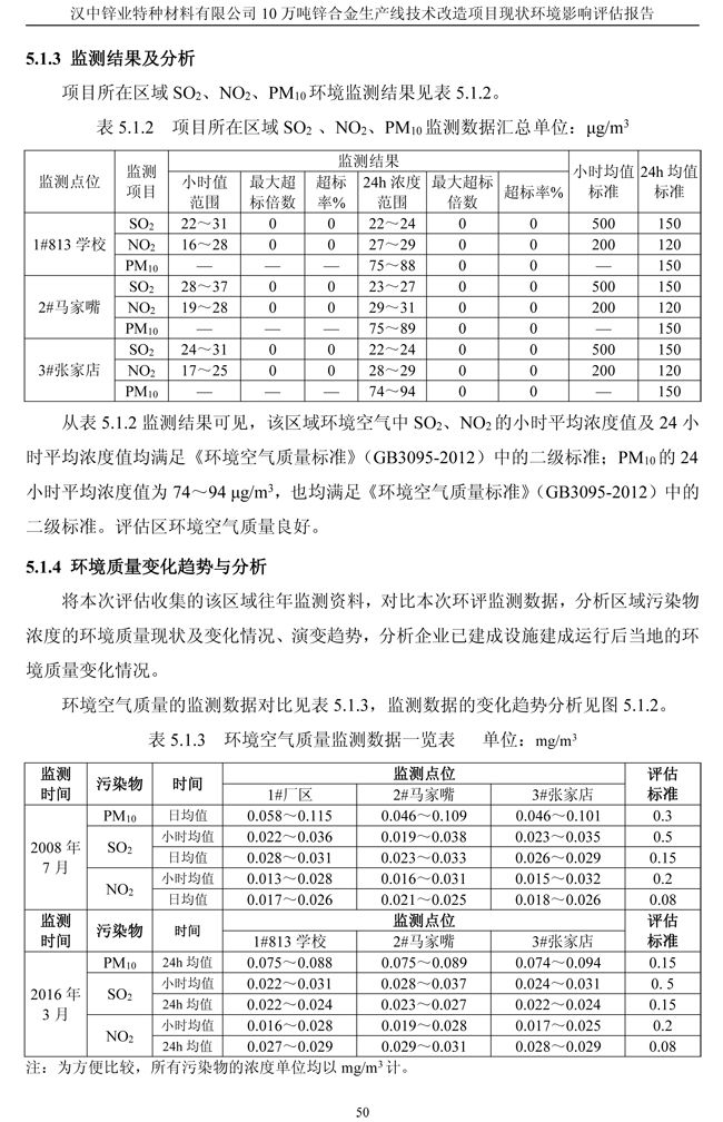 漢中鋅業公司鋅合金項目現狀環境影響評估報告