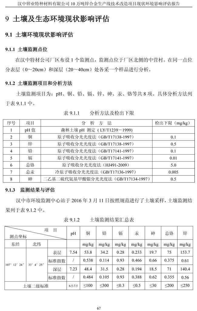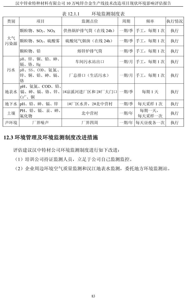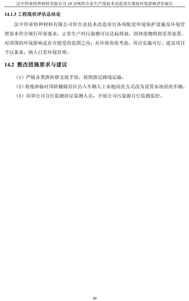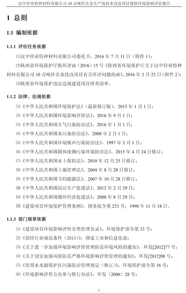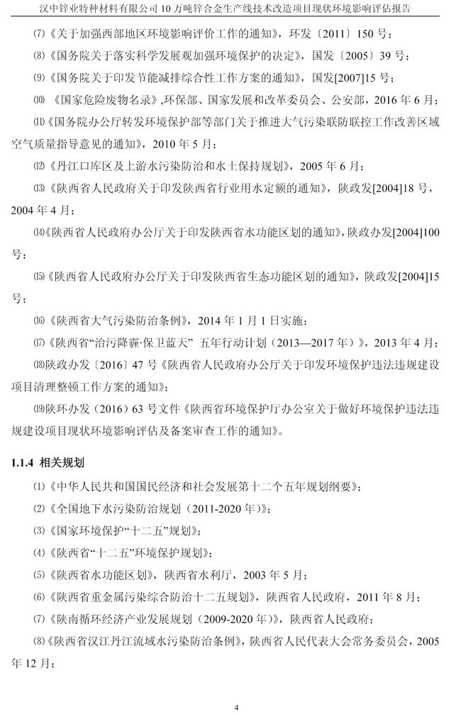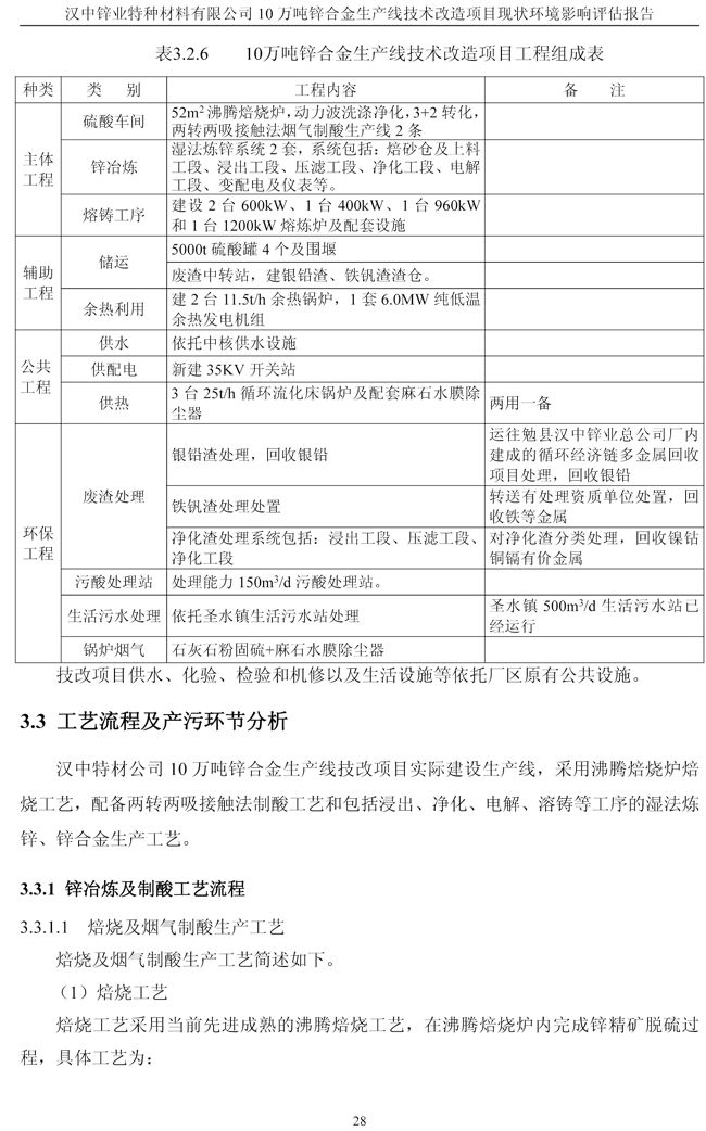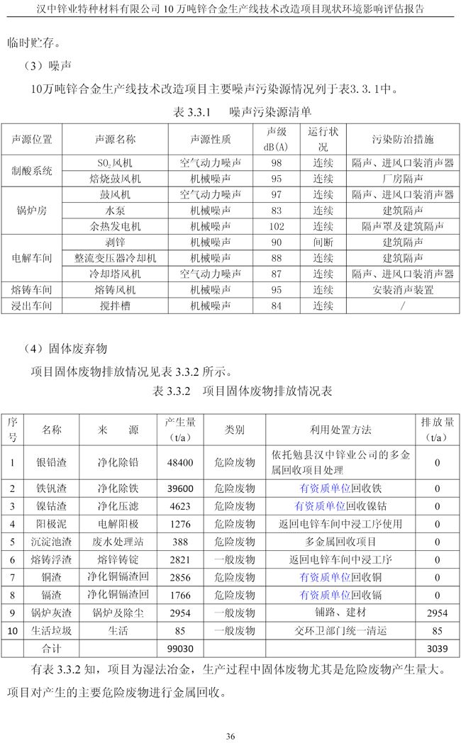 漢中鋅業公司鋅合金項目現狀環境影響評估報告