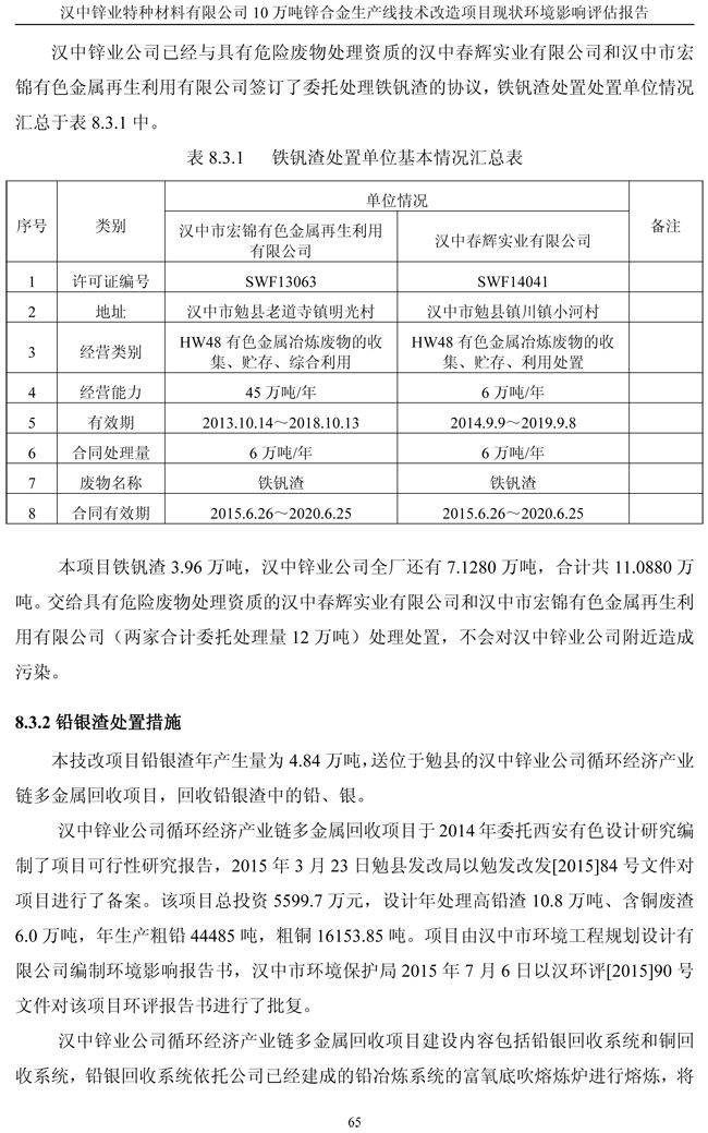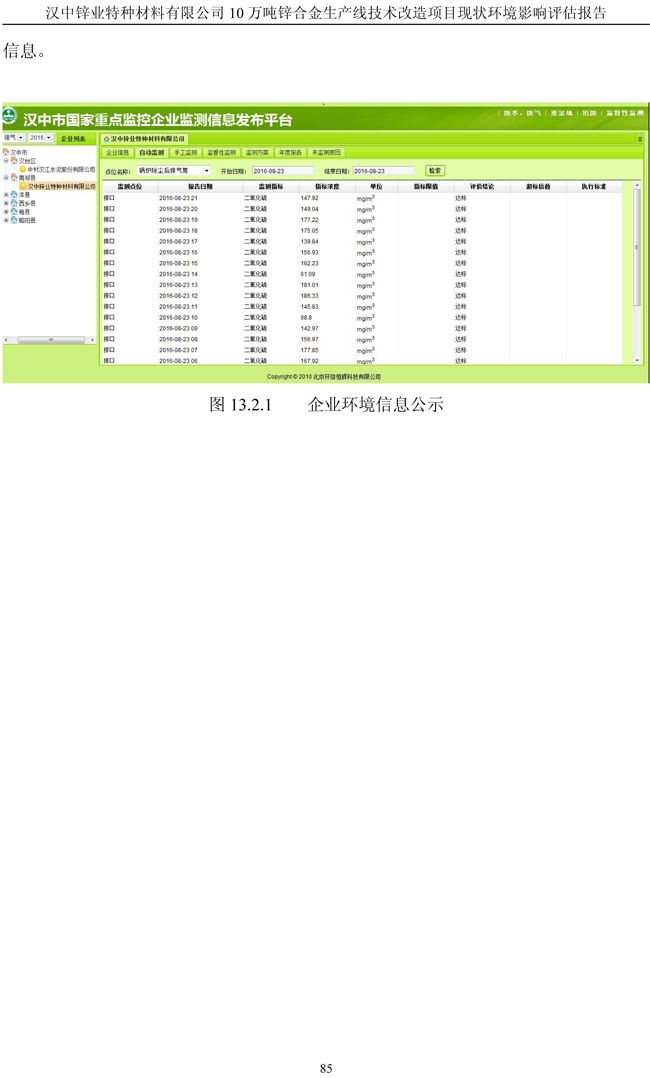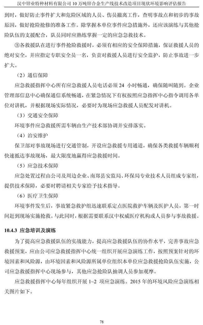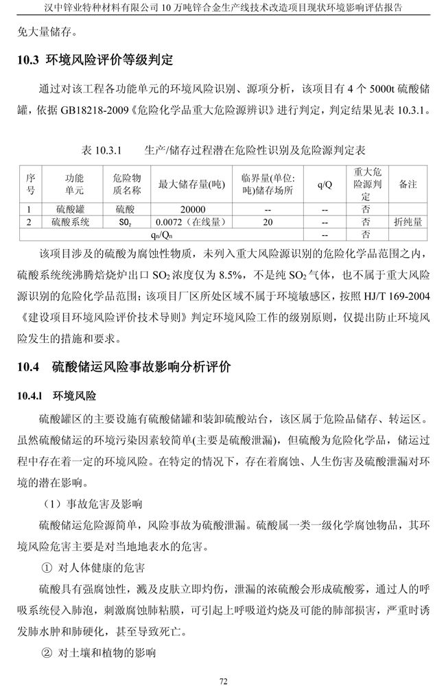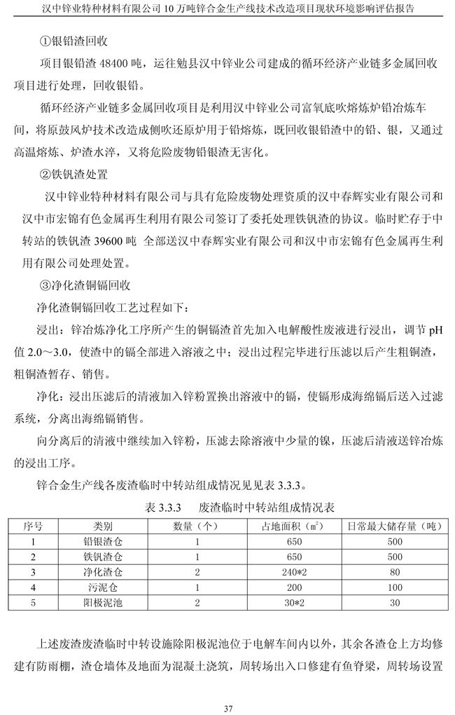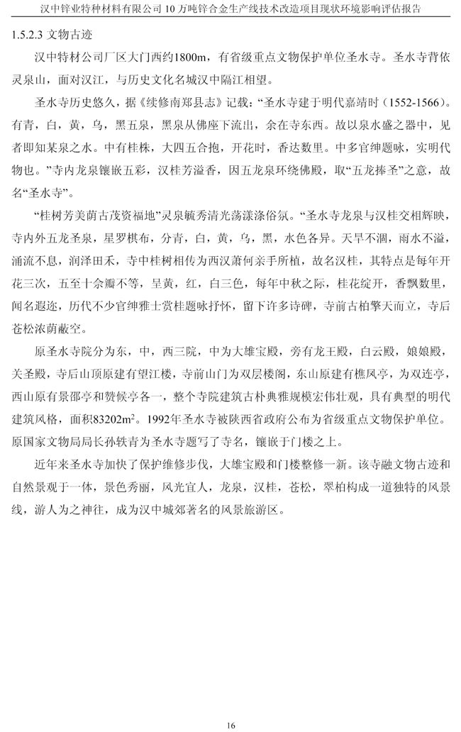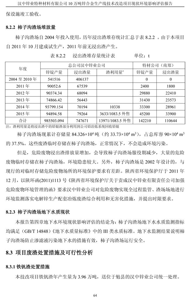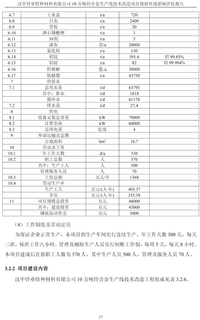 漢中鋅業公司鋅合金項目現狀環境影響評估報告