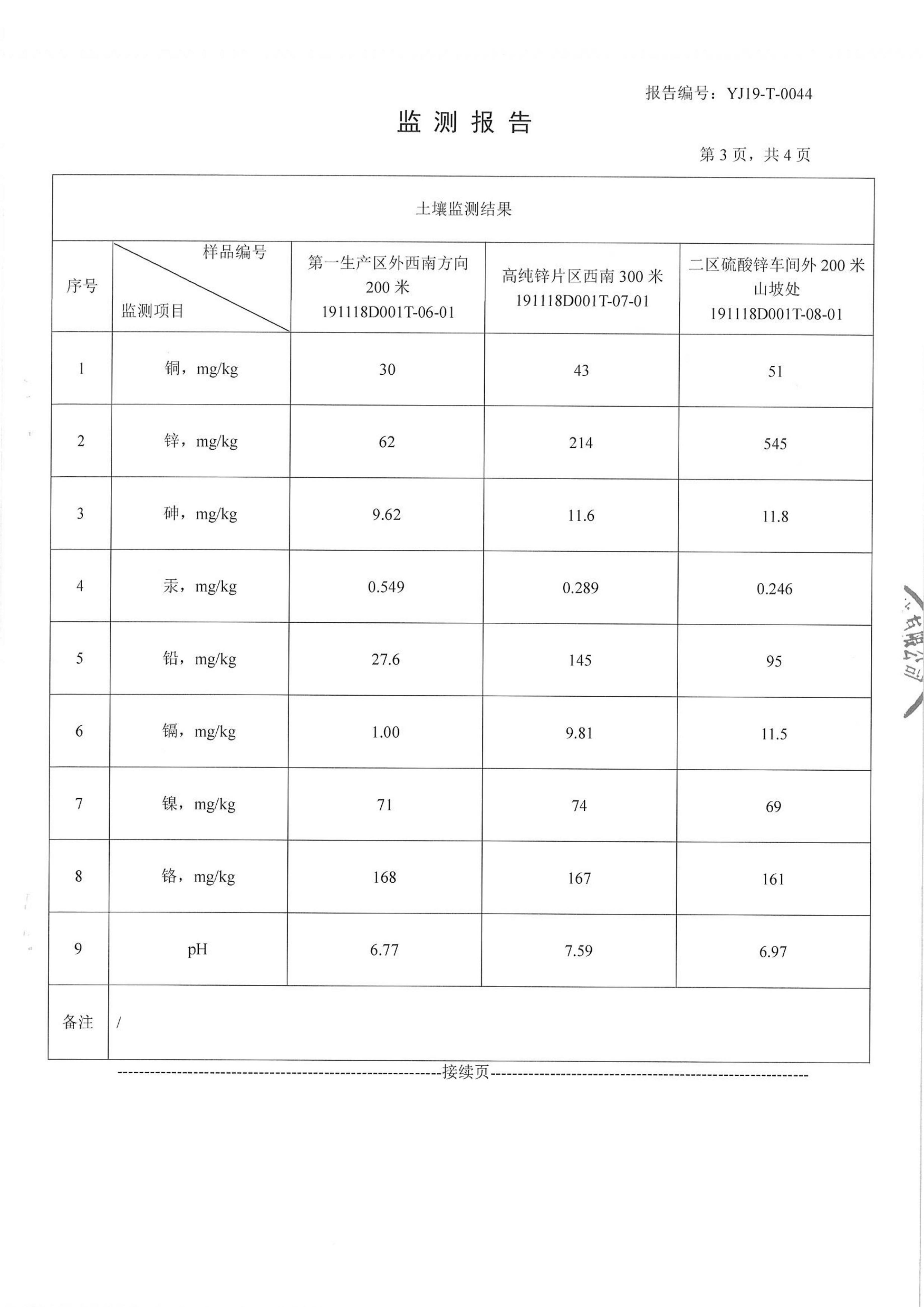 漢中鋅業(yè)有限責(zé)任公司2019年度土壤自行監(jiān)測(cè)公示