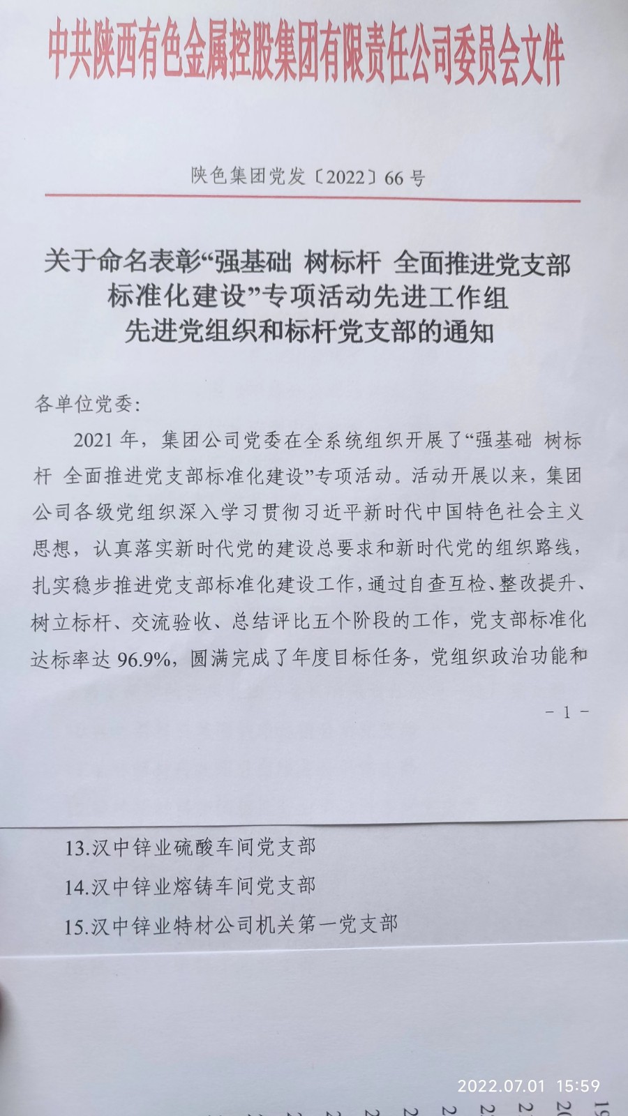 近日,集團黨委對“強基礎 樹標桿 全面推進黨支部標準化建設”專項活動先進工作組先進黨組織和標桿黨支部進行了命名表彰,公司黨委榮獲“‘強基礎 樹標桿 全面推進黨支部標準化建設’專項活動先進黨組織”,硫酸車間黨支部、熔鑄車間黨支部、特材公司機關第一黨支部等3個黨支部被評為“標桿黨支部”。