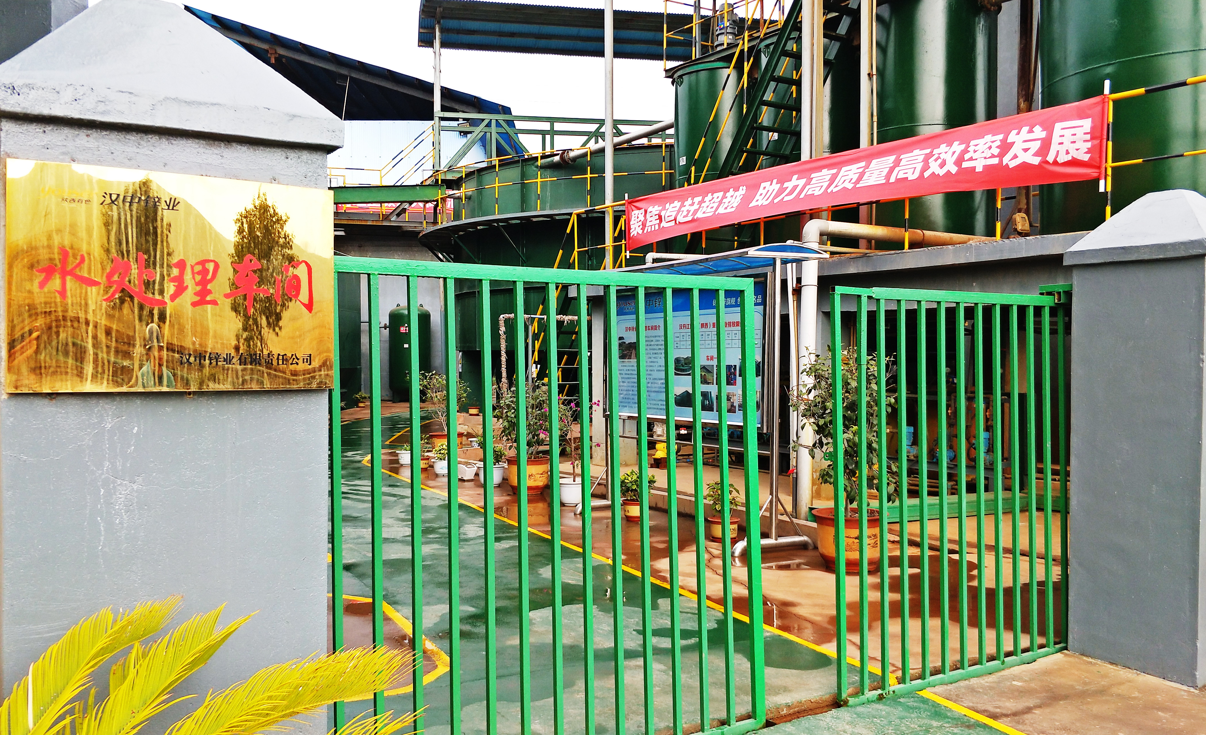 然而,當(dāng)我們走進漢中鋅業(yè)公司水處理車間,奪目而入的景色卻令人眼前一亮:一字排開的垂柳,枝繁葉茂,黃綠相間的枝葉在冬日暖陽下翩翩起舞。沿圍墻新砌的小花池綠意盎然,大門旁的兩棵鐵樹在花團錦簇的萬壽菊簇?fù)硐拢鷻C勃勃。剛刷過漆的綠色柵欄式推拉門與金光燦燦的“水處理車間”銅字招牌相得益彰,熠熠生輝,關(guān)不住滿園景致,綠色的設(shè)備,綠色的通道,黃色的邊界線,擺放整齊的盆景,醒目的巨幅宣傳牌、宣傳橫幅、櫥窗,洋溢著濃厚的文化氣息。