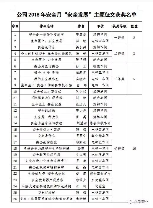 公司安全月“安全發(fā)展”主題征文評(píng)獎(jiǎng)結(jié)果揭曉