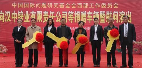 11月12日上午,中國國際問題研究基金會西部工作委員會向陜西鋅業(yè)、五洲礦業(yè)、煎茶嶺鎳業(yè)及我公司捐贈救護用車儀式在公司隆重舉行。中國國際問題研究基金會副理事長、西部工作委員會主任時進龍,陜西有色集團工會主席秦西社及公司董事長劉朝斌、總經(jīng)理侯小強出席儀式。陜西鋅業(yè)工會主席李珍珠、五洲礦業(yè)工會主席余文遠、煎茶領(lǐng)鎳業(yè)黨委書記楊宏信及公司工會主席李永代表各自企業(yè)接受了捐贈。