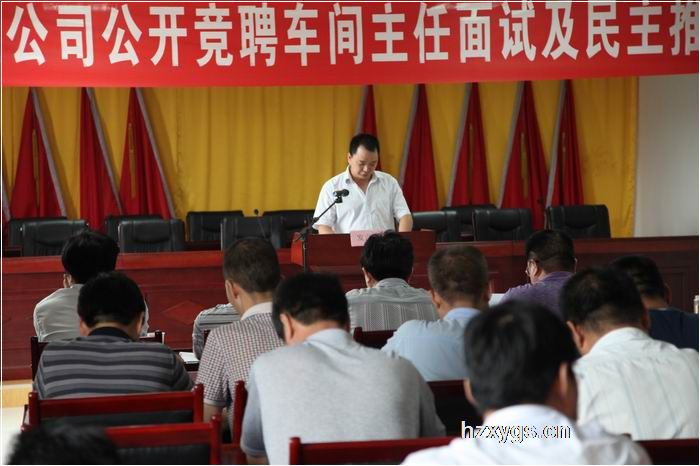 劉朝斌總經(jīng)理在會上指出,公開競聘車間管理干部,是公司實施人才興企戰(zhàn)略,推進選人用人機制創(chuàng)新的重要舉措。劉總要求各評委和民主推薦人員認真負責地做好評審和推薦工作,確保此次競聘圓滿完成;競聘人員要充分發(fā)揮,盡量把自己的水平展示出來。