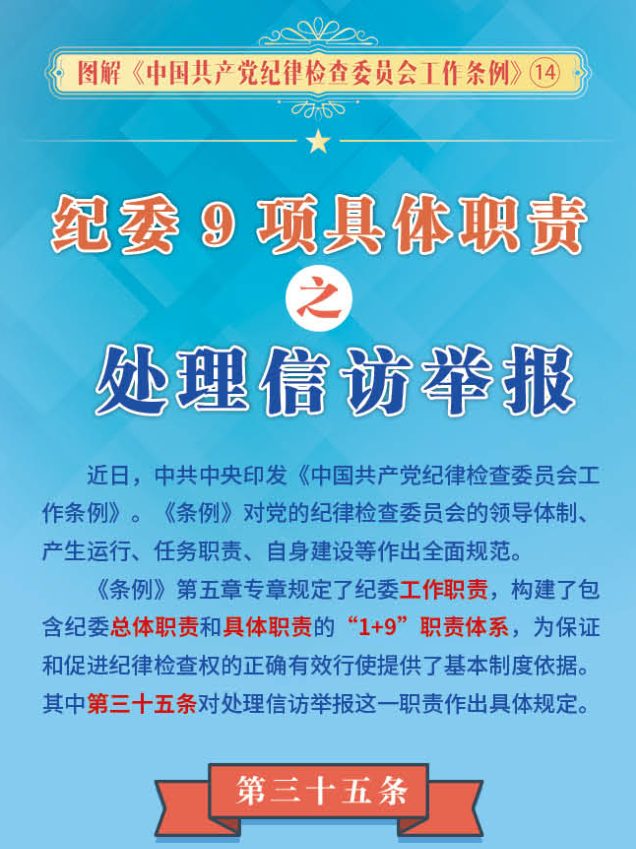 第六期:圖解中國共產(chǎn)黨紀(jì)律檢查委員會工作條例紀(jì)委9項(xiàng)具體職責(zé)之處理信訪舉報(bào)